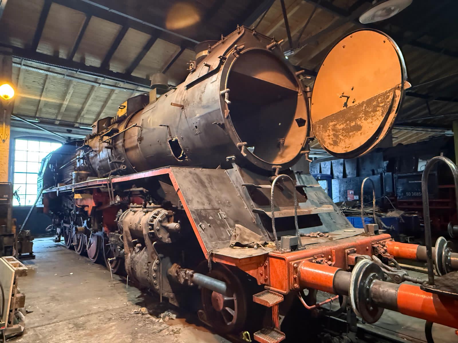 Bevor die Saison losgeht, haben wir ordentliche Fortschritte bei unserer Dampflok 50 3682 erzielt, die sich gerade in der Demontage befindet, damit sie einen neuen Kessel erhalten kann. Vorher muss allerdings noch das Führerhaus abgenommen werden, was gerade die Hauptaufgabe ist. Man glaubt gar nicht, wie viele Schrauben und Verbindungen zu lösen sind, damit das Führerhaus vom Rahmen und vom bisherigen Kessel getrennt werden kann. Etliche Schrauben waren dabei nicht mehr zu lösen. Also war der Schweißbrenner im Dauereinsatz, um sie durchzutrennen. Die angefügten Bilder zeigen den Einsatz der Kollegen.