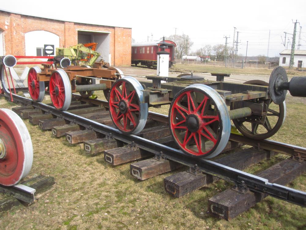 Auf dem Gelände des ehemaligen Lokschuppens 1 wurde ein kurzes Gleisstück errichtet, auf dem zwei Drehgestelle aufgestellt sind. Dabei handelt es sich um Hilfsdrehgestelle aus dem benachbarten Ausbesserungswerk der Deutschen Bahn AG für Reisezugwagen. Wagenkästen werden dort auf solche Hilfsdrehgestelle gesetzt, wenn ihre originalen Drehgestelle zur Wartung ausgebaut wurden.
